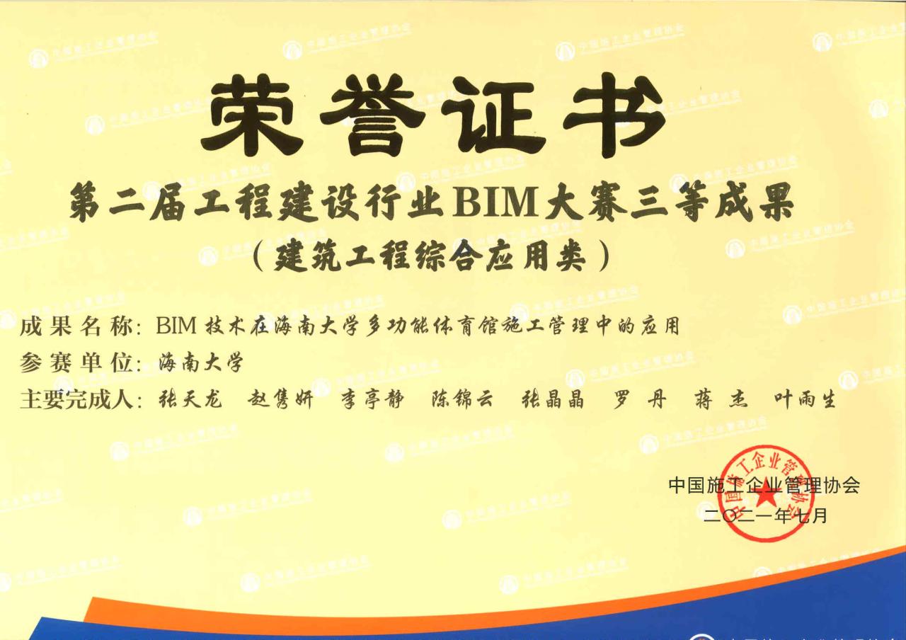 本届大赛组委会设在工业和信息化部人才交流中心,组委会秘书处设在石家庄铁道大学,大赛组委会组建专家委员会,中国工程院杜彦良院士担任专家委员会主任,石家庄铁道大学王明生教授担任秘书长。在赛制上,本届大赛坚持校企联合报名的参赛制度,由院校(高职、本科)和企业联合组成团队参赛。其中由张天龙老师指导、伟德国际bevictor1946源自英国BIM协会申报的“伟德国际bevictor1946源自英国多功能综合体育馆BIM技术综合应用经过网上报名、作品提交、初评、答辩评审等环节,最终再次蝉联金奖!截止到目前,本项目已经荣获2021年全国高校BIM毕业设计大赛二等奖、2021年工程建设行业BIM大赛三等奖和2021年“龙图杯”全国BIM(建筑信息模型)大赛优秀奖。