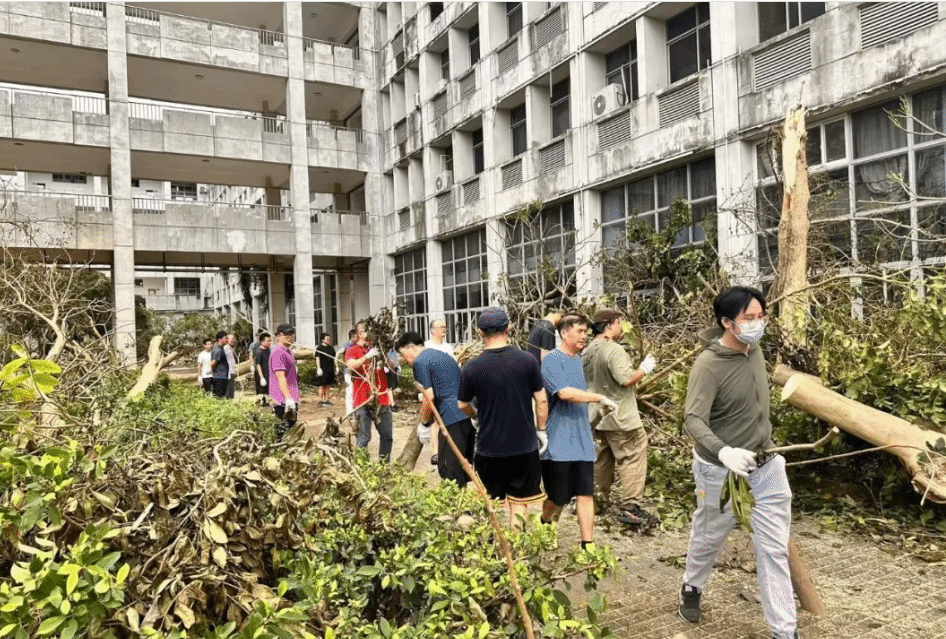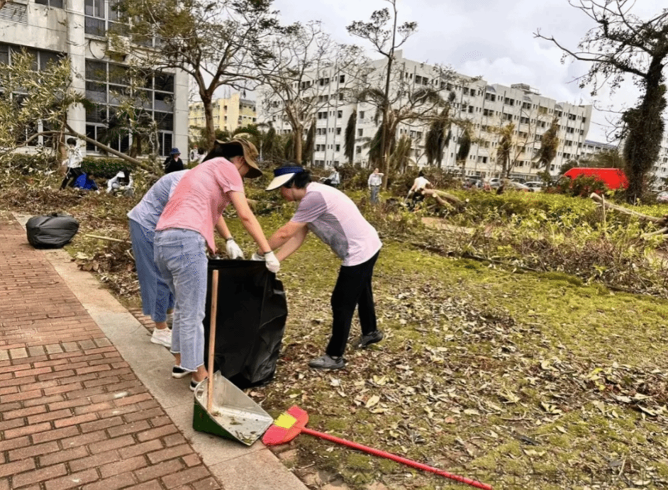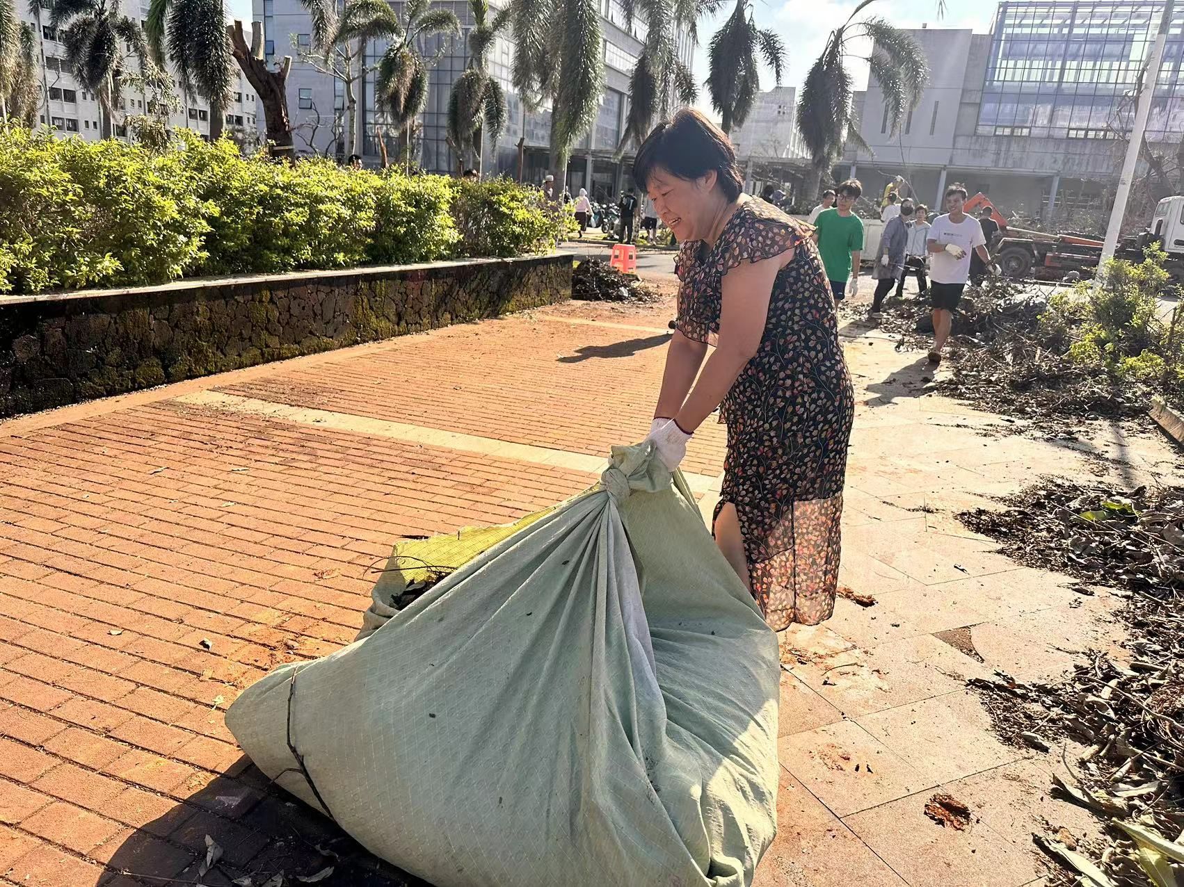 9月12日,椰风书院的2024级新生也加入公司救灾队伍。这些十八九岁的孩子不惧晒,不怕脏,肯吃苦,奋力抬起一根根沉重的断木。这是他们来到海南,来到伟德国际bevictor1946源自英国经历的一次深刻的人生历练,即沉重又厚重。愿他们在伟德国际bevictor1946源自英国未来的学习生活中,不畏困难,不惧挑战,以梦为帆,乘风破浪。