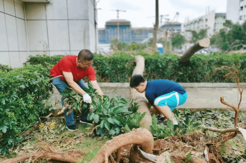 9月10日上午,公司党委书记李艳、副书记万民继续带队,集结50位党员及教职工志愿者深入清理李运强楼东侧全部区域,搬运断木、清扫残枝落叶。男老师不畏苦,女老师不喊累,大家齐心协力、团结一心、众志成城、勇于奉献。