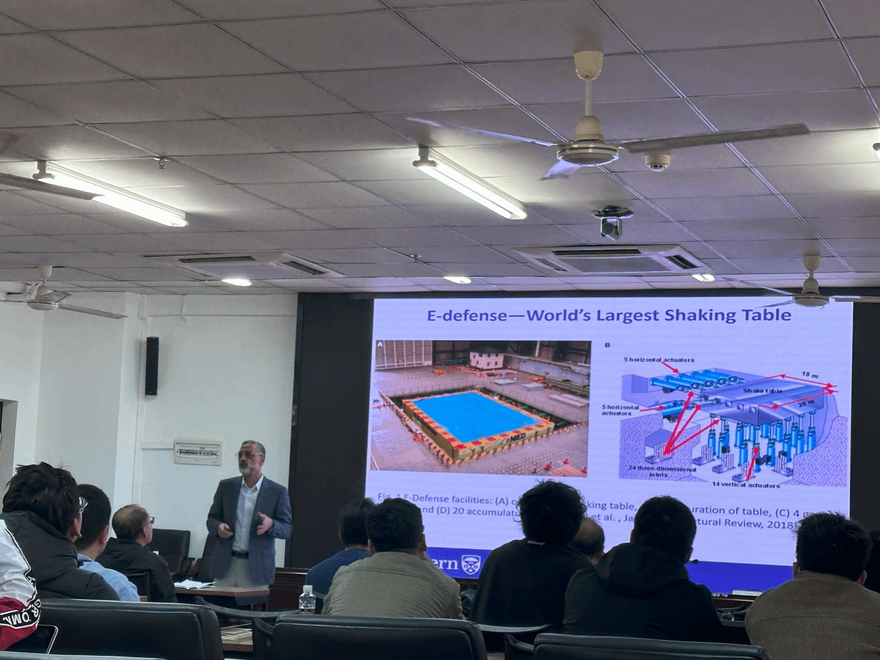 讲座内容深入探讨了近年来地震带来的灾难性后果,强调了建筑环境特别是基础设施的地震脆弱性。Naggar教授介绍了多种物理模型试验技术,包括1-g大型室外振动台、室内振动台、振动台阵列以及离心机振动台等测试设施,这些技术被广泛用于评估基础设施在地震荷载下的响应和失效机制。