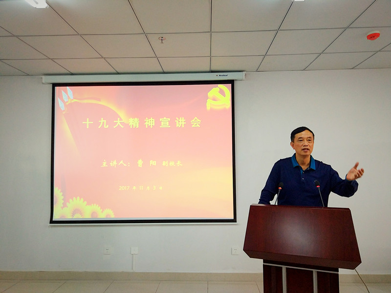 曹阳副董事长首先介绍了党的十九大召开的基本情况,指出大会的特点和新提法,向大家全面解读了十九大的主要精神。他结合十九大精神,从国家宏观政策和学科发展分析,指出当前公司“创一流”学科所面临的机会和挑战,他说在当前公司产品改革的大背景下,不仅对创一流学科提出了新要求,同样对教学、科研及人才培养提出了更高要求,同时对土建公司和食品公司两个公司的学科发展指出了努力方向。并要求全体师生要深入学习、全面学习和原原本本学习十九大精神,特别要学以致用,在认真学习十九大精神的基础上,结合公司实际,抓住当前公司面临的新机遇,勇于迎接挑战,为公司“双一流”建设贡献应有的力量。