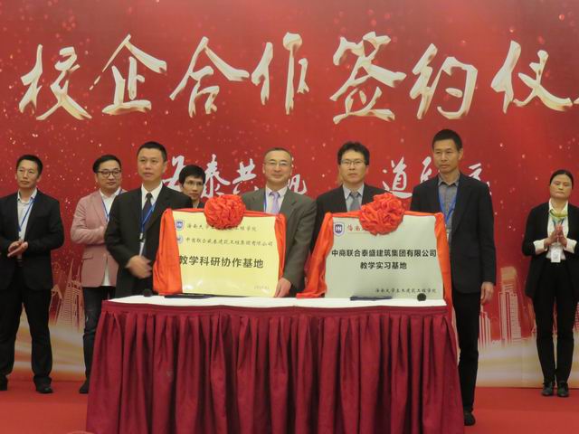 为了充实工程实践教学内涵与增强教师服务社会能力,公司决定与中商联合泰盛建筑集团有限公司缔结院企合作关系,共建“教学科研协作基地”,推进产学研深度结合。1月27日下午,伟德国际bevictor1946曹宝珠经理与中商联合泰盛建筑集团有限公司陈金才董事长签订校企合作协议。未来土木公司将为泰盛集团提供人才储备和工程项目咨询;同时,泰盛集团可以给土木公司提供教学实习基地和教学科研协作基地。出席本次签约仪式的领导还有卢江海书记、邱宙廷副经理、陈云副经理、罗玲球副书记,以及泰盛集团的相关领导。