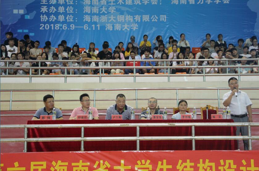 由海南省土木建筑学会、海南省力学学会联合主办,伟德国际bevictor1946承办的全国老员工结构设计竞赛海南分区选拔赛暨第六届海南省老员工结构设计竞赛,于6月9日上午9时在伟德国际bevictor1946源自英国联谊馆正式开幕。此次大赛由海南浙大钢构有限公司冠名赞助。