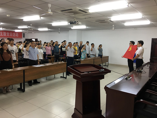为庆祝中国共产党成立97周年,进一步深刻学习领会习近平新时代中国特色社会主义思想,增强党员党性观念,定理想信念,7月3日下午,公司党委在研发楼510会议室举办主题党日活动暨新党员入党宣誓仪式。公司全体师生党员参与此次活动。活动由公司党委罗邻球副书记主持。