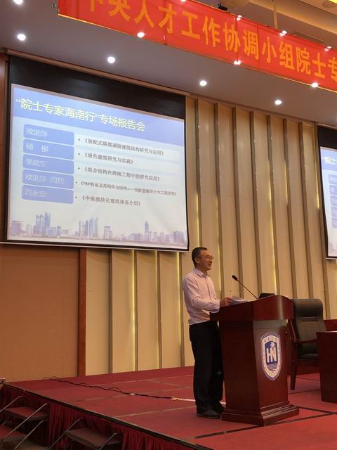 3月31日,中国工程院院士、哈尔滨工业大学伟德国际bevictor1946教授欧进萍,西安建筑科技大学建筑公司教授杨柳,清华大学土木水利公司教授樊健生受邀在伟德国际bevictor1946源自英国社科楼报告厅开展装配式建筑、绿色建筑学术报告会。海南省住房和城乡建设厅副厅长刘联伟,省住房和城乡建设厅建筑节能与科技处处长陈永富,程质量安全监管处处长田光明,工程质量安全监管处副处长沈磊,建筑市场管理处副处长李庆伟,省住房和城乡建设厅建筑节能与科技处副处长李进军;伟德国际bevictor1946源自英国公司党委书记卢江海、经理曹宝珠、副经理邱宙廷、陈云、李艳和尚春静等领导出席报告会。曹宝珠主持会议。