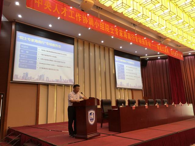 欧进萍院士分别作了“装配式隔震减振建筑结构研究与应用”和“FRP制品及其构件与结构——一类新型海洋土木工程结构”两个主题报告。结合海南地域特征和团队研究优势,欧院士从超大位移隔震支座、承载-消能钢质构件、被动自适应消能构件及其装配式建筑结构体系,以及FRP材料性能、组合产品及其在大型复杂工程中的应用等各方面,深入浅出地作了精彩报告。