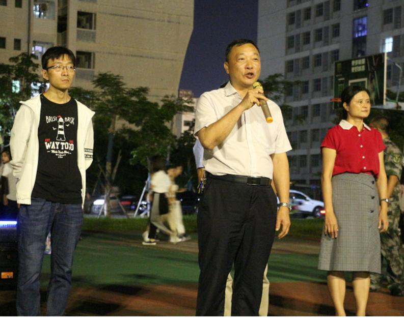 9月12日晚,2019级军训慰问活动在李运强楼前篮球场举行。伟德国际bevictor1946经理周智、党委卢江海书记、党委罗邻球副书记,辅导员李江俊老师、詹达夫老师、白玉老师、牛玉老师以及2019级土木工程一班班主任董金爽参加了慰问活动。