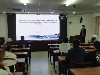 12月6日下午16:00-17:00,公司教师陈科宇副教授(2021年5月份入职)在研发楼510做了题为《基于混合现实技术的建筑运维管理》的学术报告,报告采用线上、线下相结合的方式进行。学术报告会由辛大波教授主持。公司教师、研究生及博士生50余人通过现场和腾讯会议聆听了报告会。