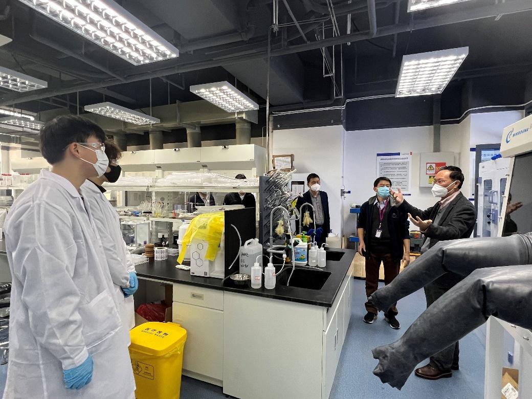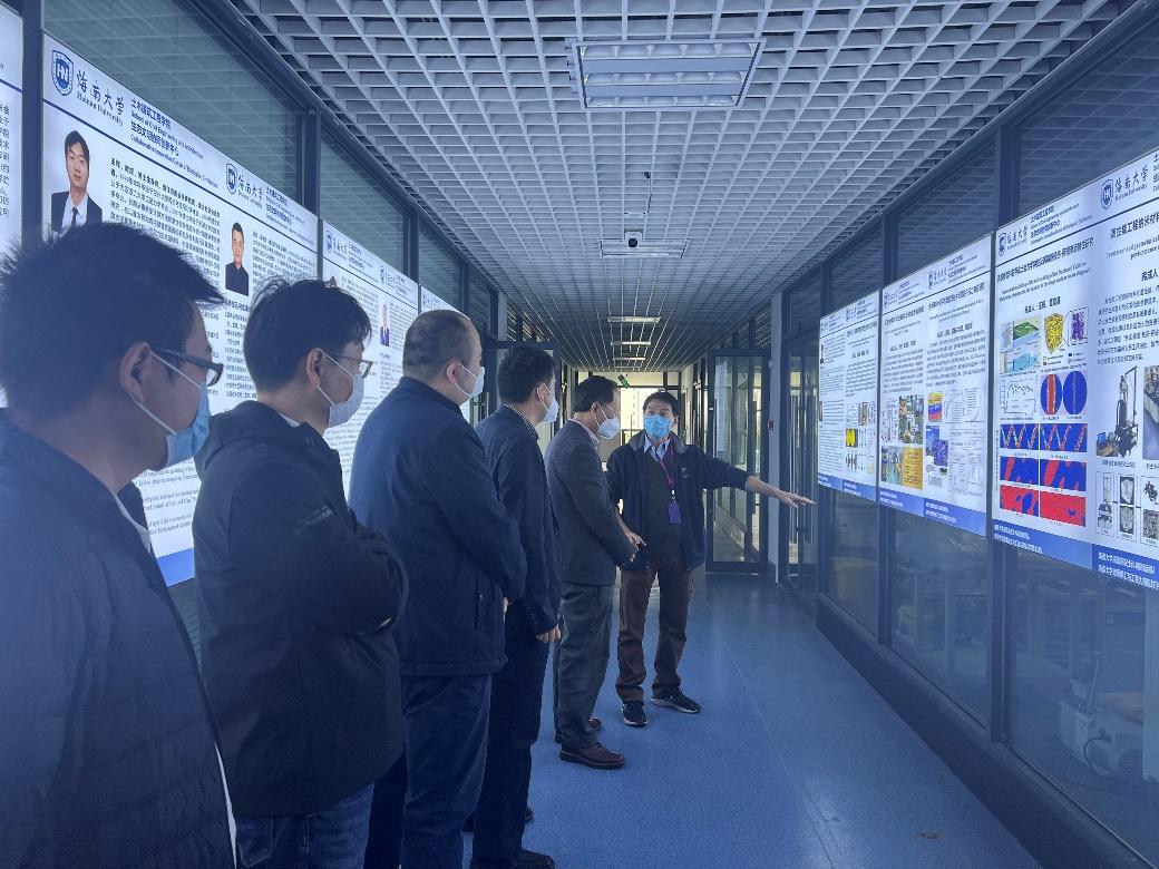 符宣国书记听取了生态文明协同创新中心董勤喜院士科研创新团队的建设思路汇报,调研了热带岛屿碳汇与工程大规模封存、滨海岩土工程、碳基新材料/复合材料、土壤污染与修复等项目进展及成果转化情况。随后来到新国重402实验室深入了解团队自研实验设备和购置设备的运转情况,考察了研究生与团队老师的办公环境。