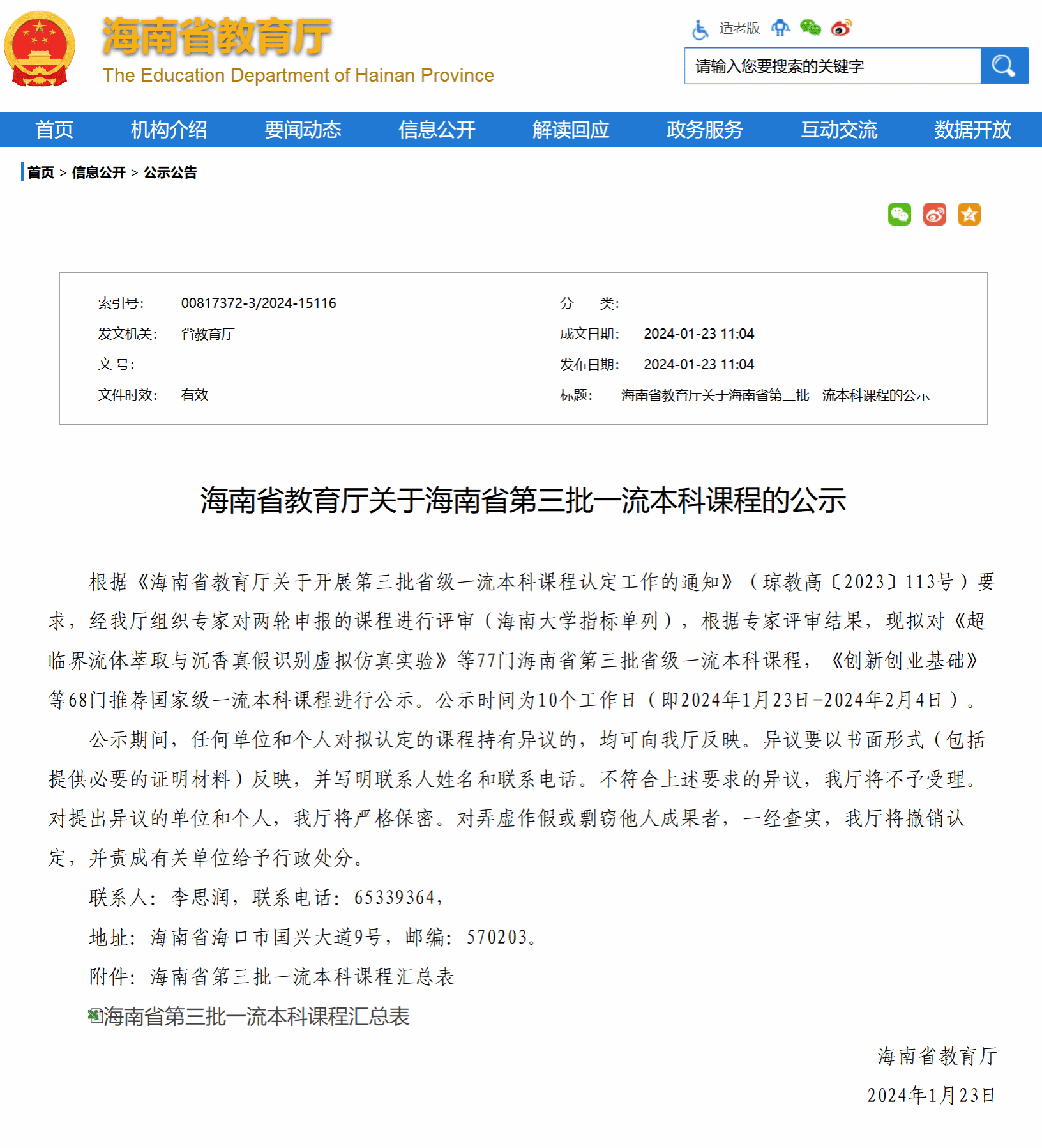 从《海南省教育厅关于开展第三批省级一流本科课程认定工作的通知》(琼教高〔2023〕113号)获悉,公司土木工程系路平老师负责的《土力学》课程认定为海南省第三批省级一流本科课程(线上线下混合式课程),并推荐申报第三批国家级一流本科课程!