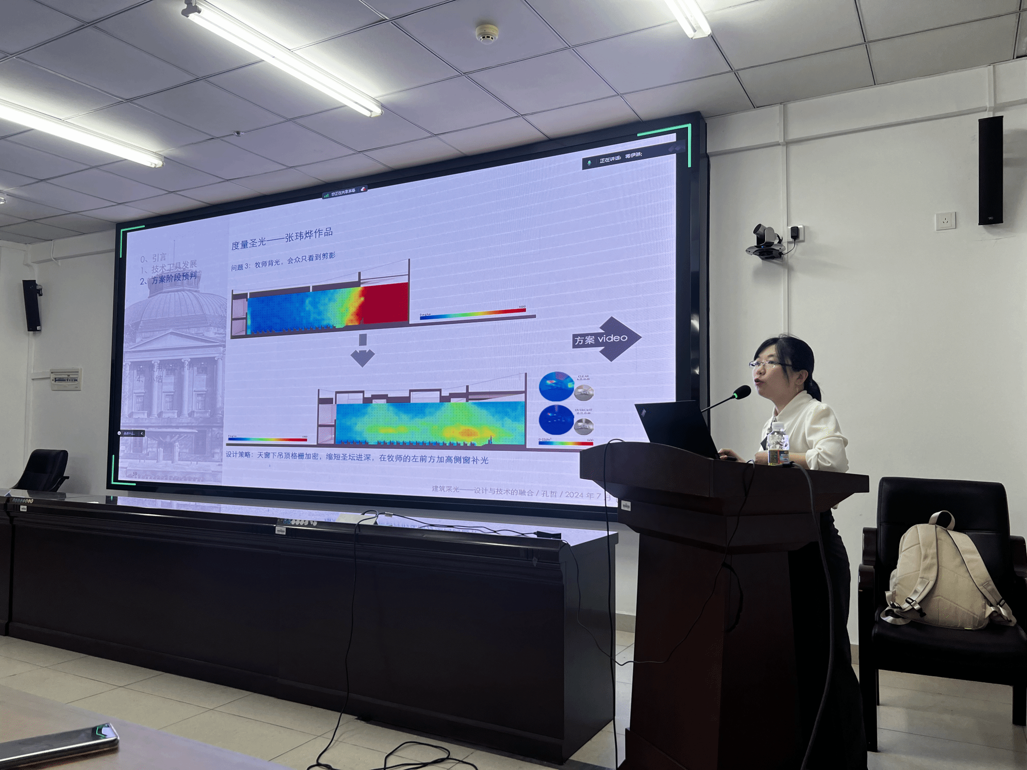 对于仍处在学习阶段、缺乏经验的员工来说,如何采用恰当的设计策略以达到预期的采光效果,是设计中的一个重要且艰难的课题。对此,孔哲副教授选取了一些经典的建筑设计案例,详细介绍了建筑设计中常用的采光设计工具及方法。通过多个实际建成和设计中的项目,例如博物馆、校园建筑和住宅项目等,展示了天然光在不同空间中的应用。从光的引入、反射到扩散,每一个细节都被精确地考量和运用,令在场师生对天然光的利用产生了全新的理解和感悟。