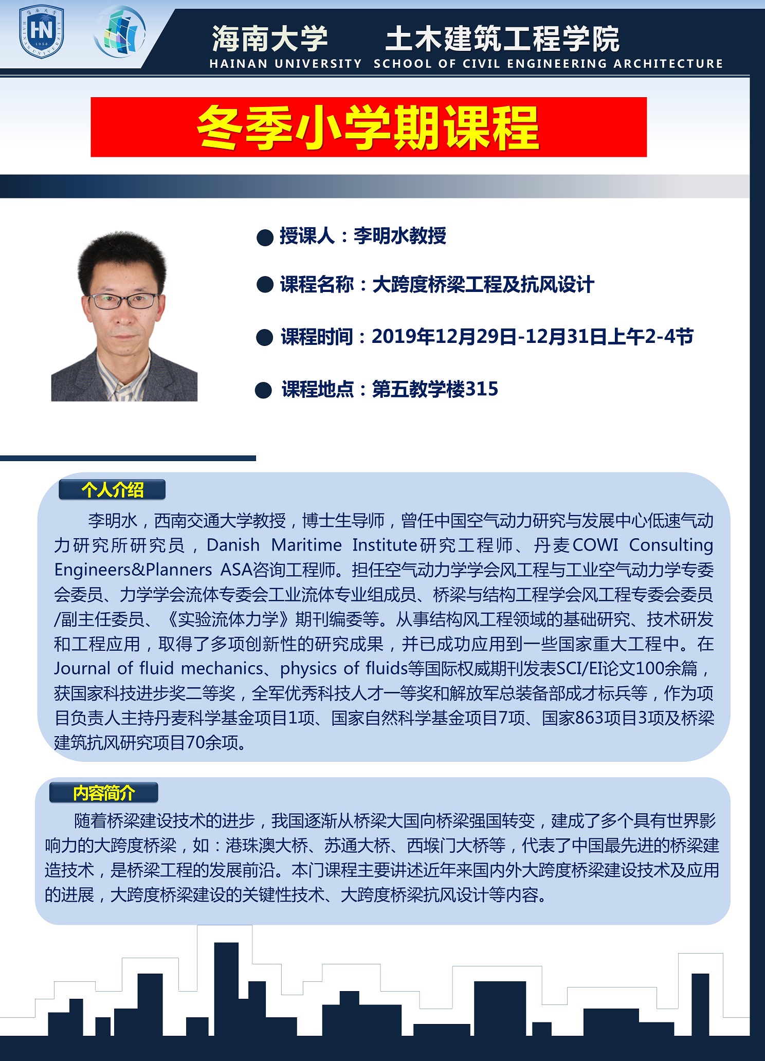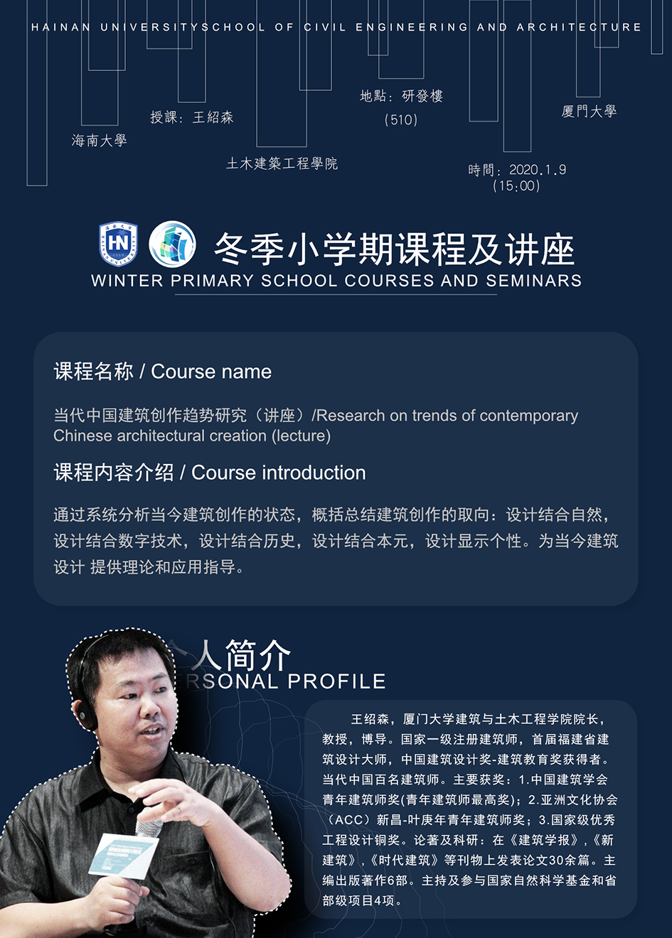 本公司2019-2020学年冬季小学期时间为2019年12月30日至2020年1月12日,地点为伟德国际bevictor1946源自英国海甸校区。