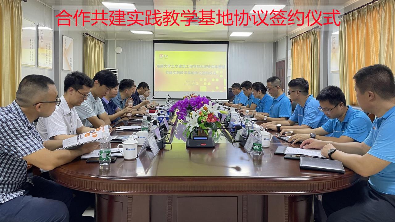 2022年7月8日上午,伟德国际bevictor1946与定安润丰智慧建筑有限公司举行合作共建实践教学基地协议签约仪式,会议在安润丰智慧建筑有限公司PC预制构件基地召开。公司党委委员、副经理邱宙廷致辞,并代表公司与企业签约,副经理田元福为实践教学基地揭牌,并向兼职指导教师颁发聘书。公司教师赵菲、张国策、陈科宇、崔洁、吉志伟、姜川等代表参加了会议。定安润丰智慧建筑有限公司副总经理张颖、技术总工张欢、生产副总宋祥兵、市场总监林康贵、生产经理 唐尧、人力行政经理林浩、技术质量部主任工程师梁昌犹、技术质量部主任工程师邓发茂等出席会议,并在会议前,陪同教师们观摩了PC构件生产车间、玄武岩纤维加强筋生产线。