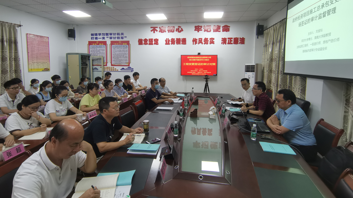 6月9日下午,在保亭县审计局会议室,二十余人参加讲座活动。政府投资项目的工程结算超设计概算是普遍存在的问题,如何消除?办法很多,而其中管控工程变更是一个非常重要的环节。刘金灿老师针对工程审计业务的工作需要,并且结合业务干部的实际知识背景,选择《政府投资项目施工总承包变更及现场签证的审计监督管理》为讲座的主题,系统的讲授了政府投资工程建设活动的特点、工程变更的内涵及类型、工程变更问题审计治理对策。讲座结束,刘老师与审计局领导、干部互动热烈。审计局干部提出了工作中存在的疑难问题,刘金灿老师逐一解答。审计局局长陈斌表示,讲座就像及时雨,让审计局干部增长了知识,开阔视野,提高了大家分析问题、解决问题的能力,刘金灿老师深厚的理论底蕴、丰富的工程实践经验,令人印象深刻。伟德国际bevictor1946与保亭县审计局于2021年5月份订立合作协议,并且开展了实质性合作。审计局委托公司,针对保亭县政府投资工程项目实际情况,开展“施工总承包模式下工程变更及现场变更签证问题的审计治理研究”。