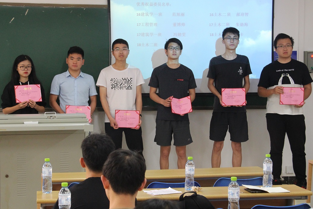 首先,罗成秀以“卖年糕”等维权事件为例介绍权益自律部在过去的半个学期的具体工作及主要维权成果。之后,权益自律部分别向16级建筑学范旭丽、16级土木二班郝迎智、17级工程管理董博帅、17建筑学一班冯靖雯、17级土木二班朱勋海、18级土木一班卞卡、18级土木二班曹乾七位权益委员颁发优秀权益委员证书。大会中,17级董博帅同学为大家分享了他大一时作为权益自律部干事时处理一位学姐在图书馆一楼复习受到中日友好交流中心附近噪音影响后与工作人员发生冲突的事件时遇到的困难,后来他灵活的运用权益知识,事情得到圆满的解决;他提到权益委员要积极配合权益自律部的工作,努力维护公司里同学们的合法权益。大会最后,罗成秀总结了权益自律部在上半年独立完成的和与伟德国际bevictor1946源自英国员工会合作完成的维权事件。罗成秀提到还存在细节维权事件较少,与公司的同学不能及时沟通之类的问题,需要权益委员们和权益部门的共同努力,争取早日解决。