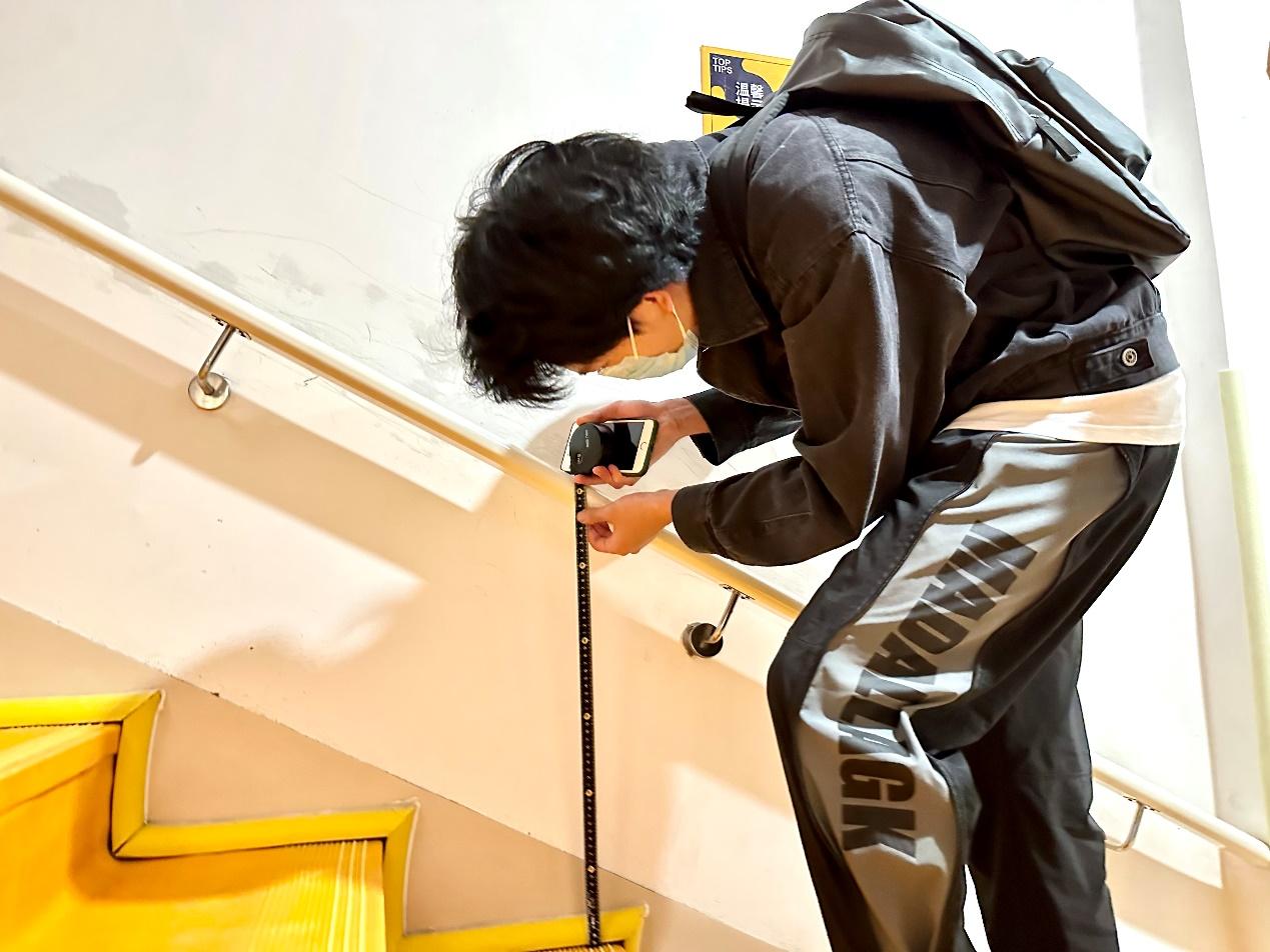 员工认真测量楼梯尺度