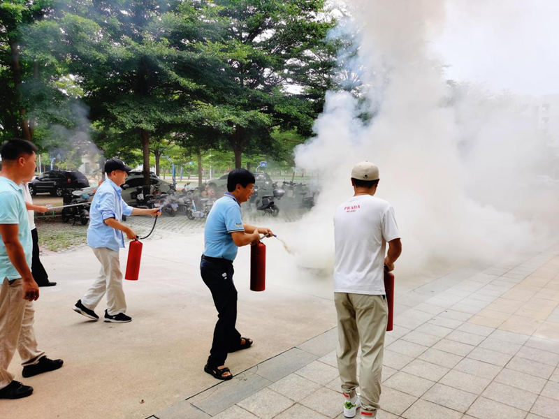 在学习了消防理论知识和消防器材的使用方法后,教职工们在室外进行了实际灭火演练。利用李运强楼前空地,制造火情,老师们轮流使用灭火器进行灭火,通过实地操作,教职工们对消防器材的使用从理论上升到实践,更加了解和掌握消防器材的使用要领,为更好的应急处置突发火情奠定了扎实的基础。